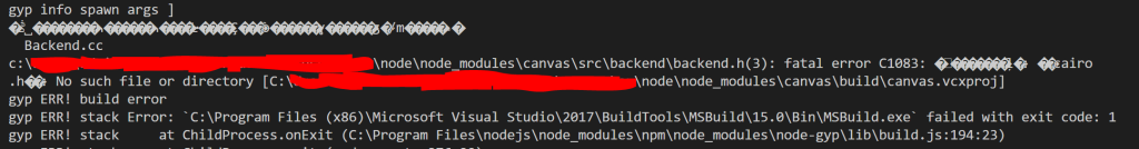 这次在开坑安装canvas的时候就被搞了一波。关键是我的部署工具的输出不知道为什么出乱码,有点影响对问题的判断。