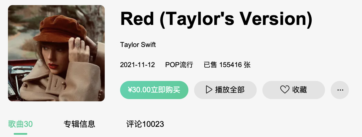 还有一点蛮不错的是Apple Music上可以免再付费听Taylor Swift的歌曲。2014年霉霉在Spotify为代表的免费流媒体服务上下架了她的音乐,国内的平台也不例外。现在,QQ音乐上每个霉霉的专辑都要额外付费购买以后才能播放,就算有绿钻订阅也不行。