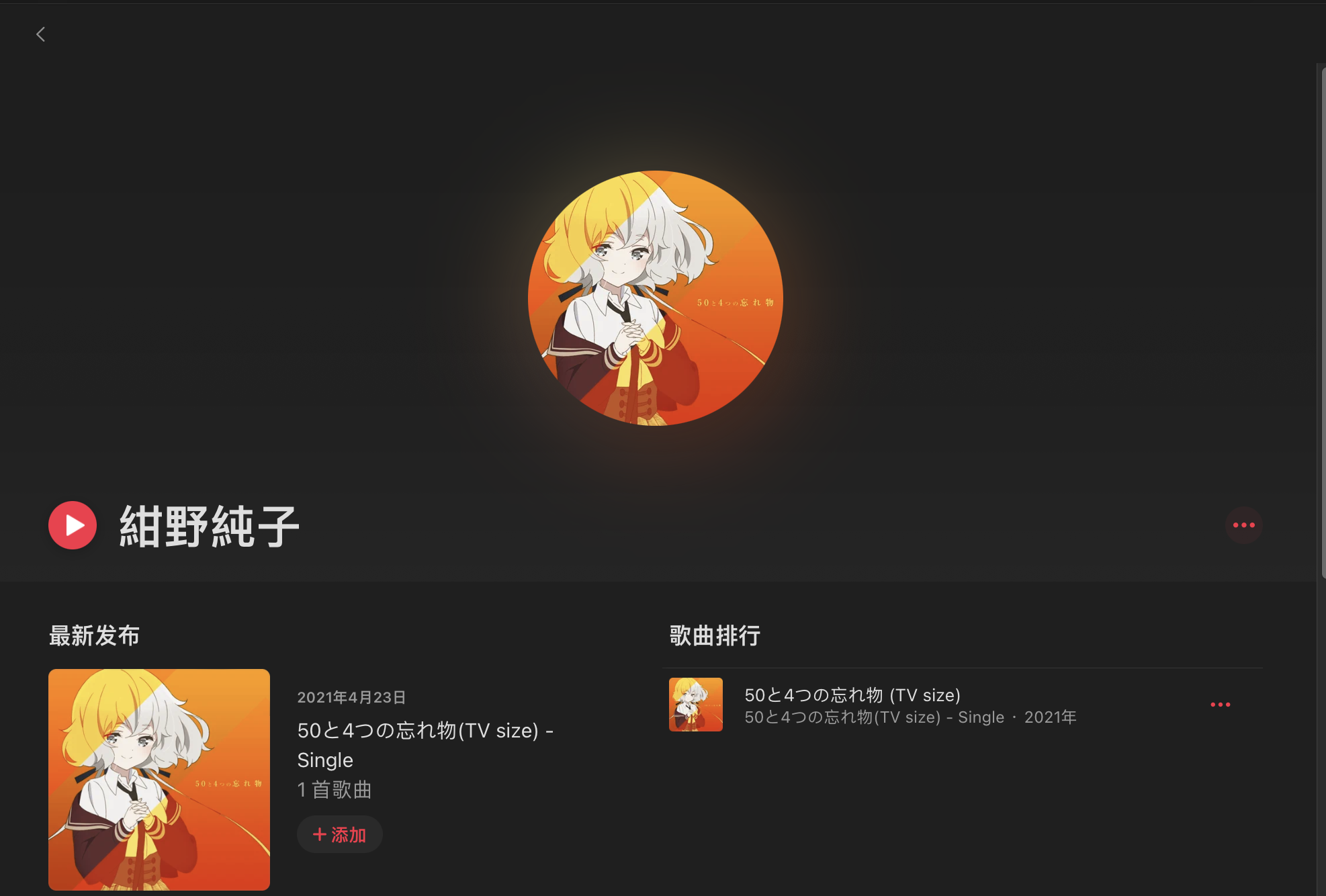 Fran Chou Chou第二季的曲子倒是令人意外地有收录。昭和偶像绀野纯子弹唱的那首50と4つの忘れ物原本也是没搜到的。搜了下发现原来Apple Music上给这首歌标的歌手是绀野纯子而不是她的CV河瀬茉希。