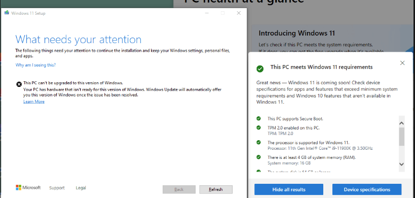 当时是提示MBR不行,非要GPT才可以。就算Health Check显示已经准备好升级Win11也没用。