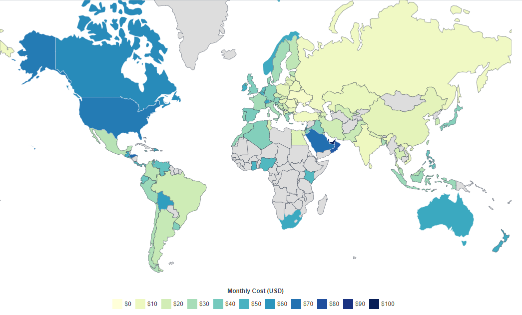 但是随后我就去搜了一下各个地区的网费,其实也不是想象中的那样?至少并不是什么地区都“便宜大份”