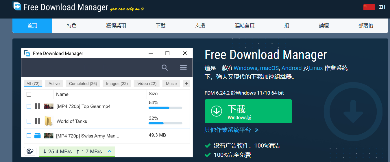 但是如果你偏好免费无广告那么可以推荐FDM和qbittorrent
