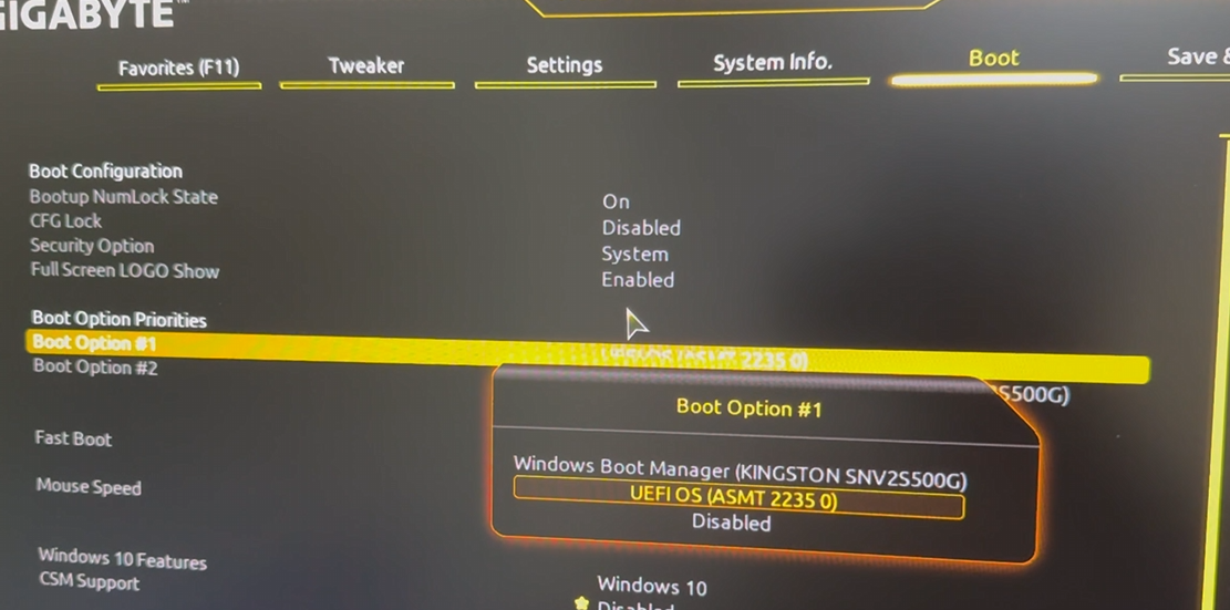 进入BIOS后修改启动选项,如果是Win11必须UEFI启动(官方要求如此,虽然也有强行MBR启动安装的)