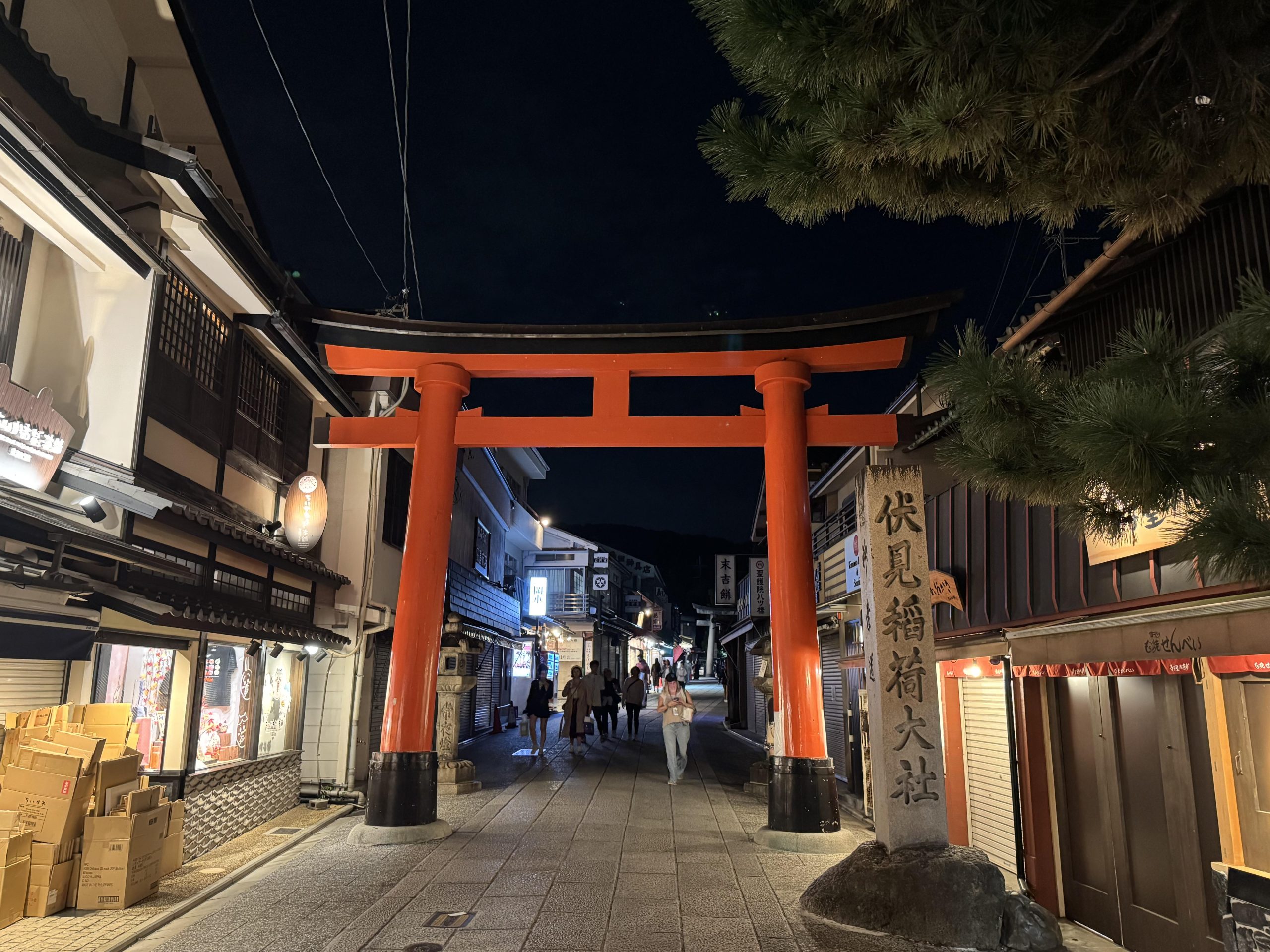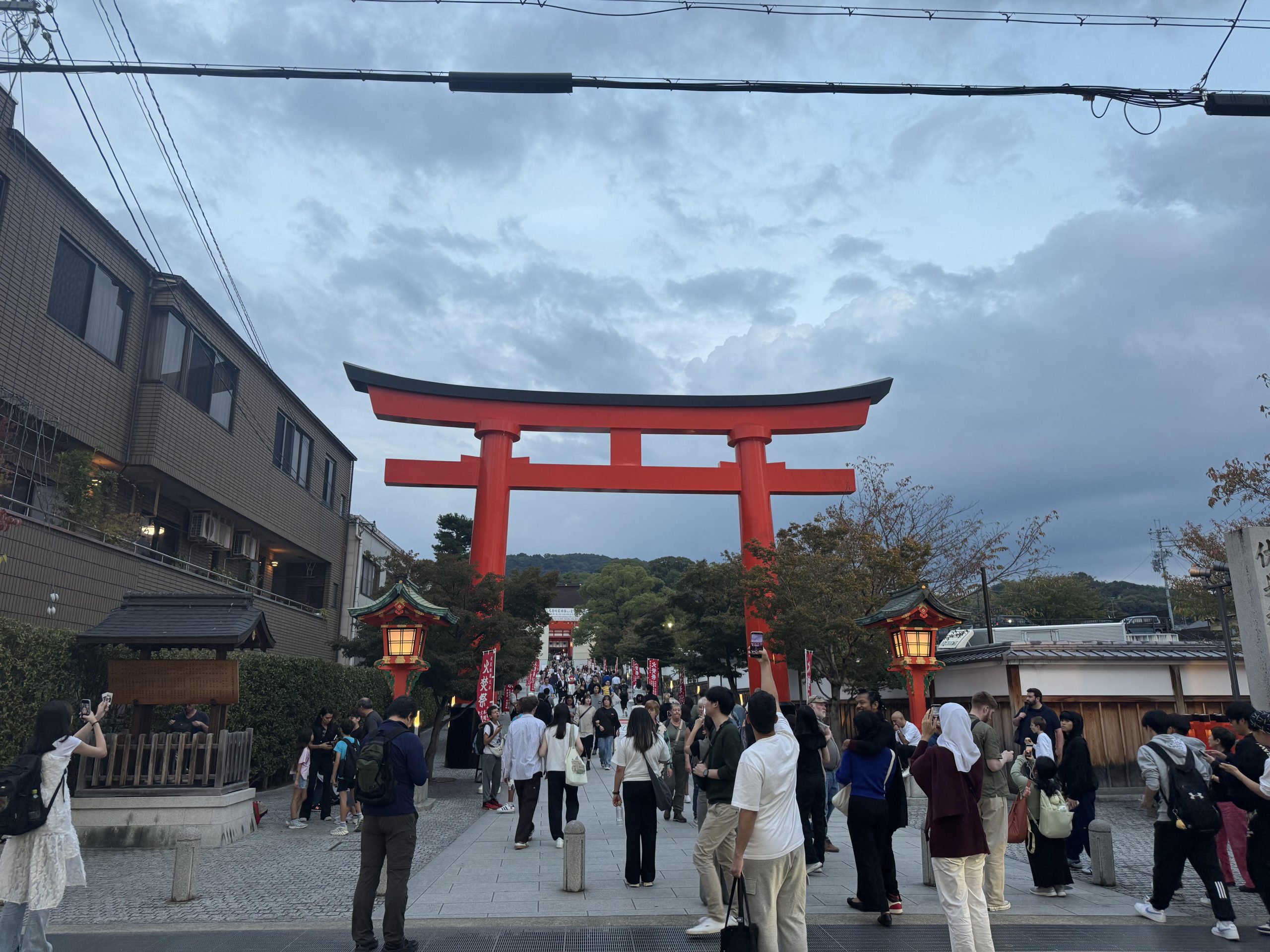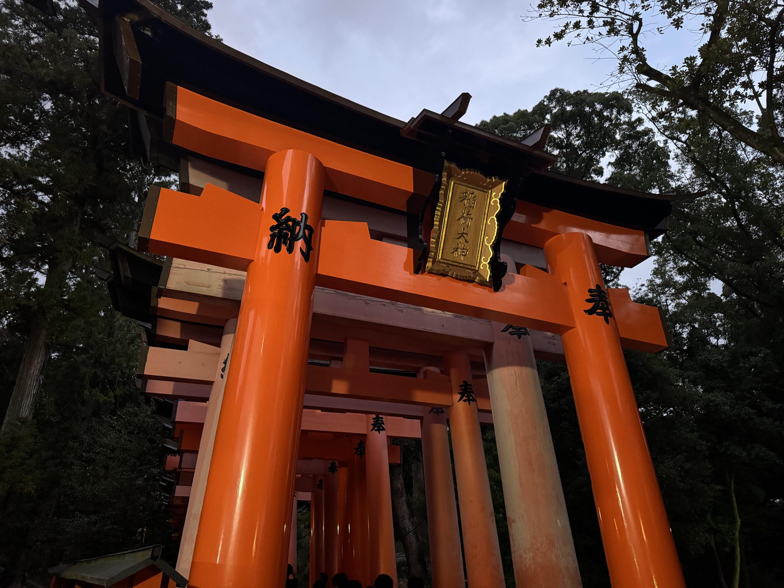 出来后坐了不知道多久的机场大巴晃到了京都,放下行李后看着时间还够就想趁天色暗下来之前至少去个近的地方,一看伏见稻荷只需要10多分的车程就毫不犹豫出发了。