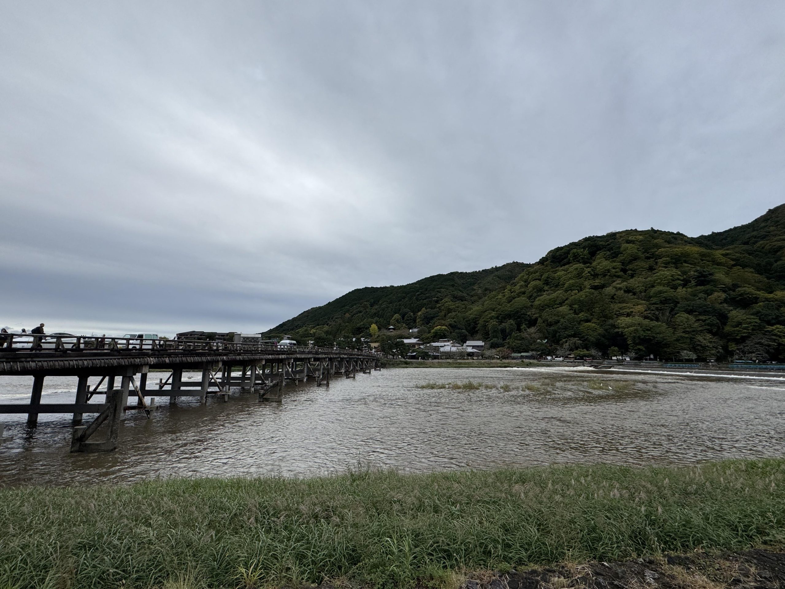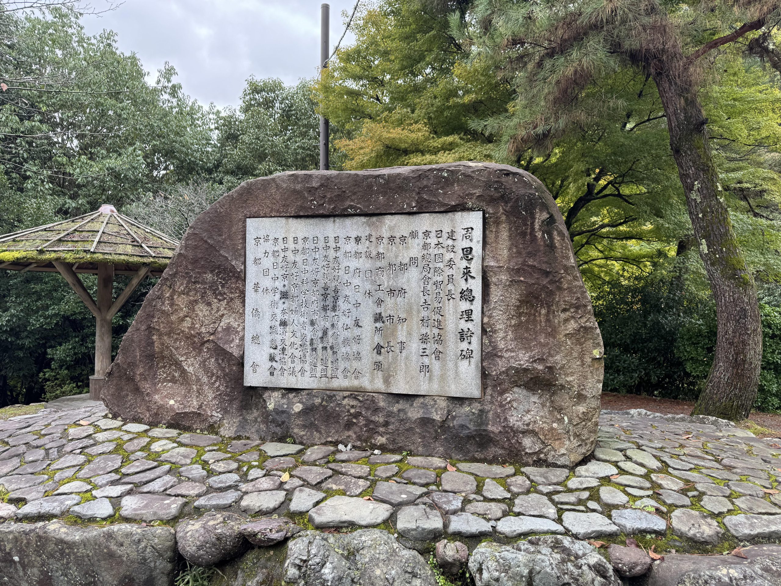 到岚山公园附近看渡月桥,并没有看到想象中的一片片红叶(入秋了但时候未到)。这一行之前也没有做过太多的预习功课,就这样意外发现原来此地还有个总理诗碑,这个天气倒是挺应景的。