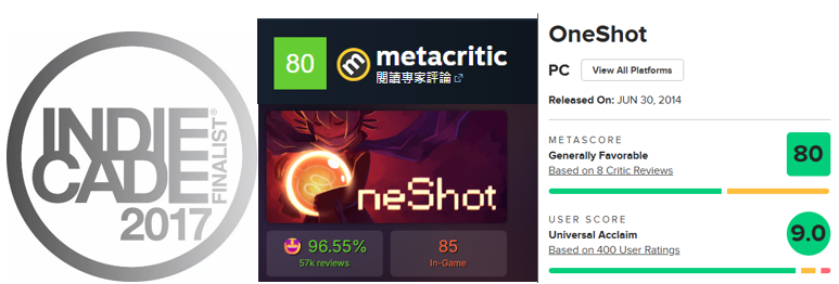 《OneShot》虽然并未获主流游戏大奖,但它在独立游戏开发领域获得了一定分量的专业认可。其中成功入围了 2017年度的IndieCade国际独立游戏节决赛圈。能够从全球成千上万的参赛作品中脱颖而出、进入决赛名单,这本身就证明了《OneShot》在叙事创新、互动设计和情感表达上获得了认可。