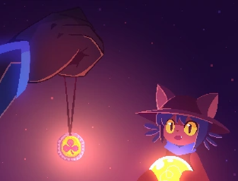 画面中的白猫和高顶礼帽是他的标志性网络头像,其形象来源于《OFF》中的角色“审判者”(The Judge)。除了是一位有才华的创作者,菲利克斯也曾是《OneShot》的测试玩家,并活跃于游戏的社群之中 。